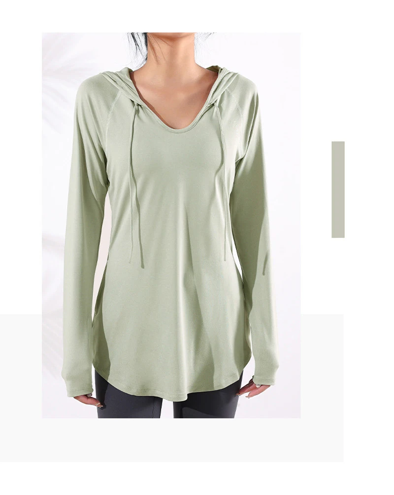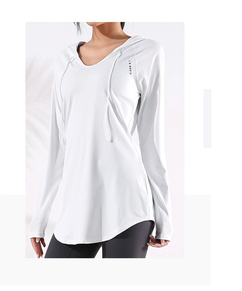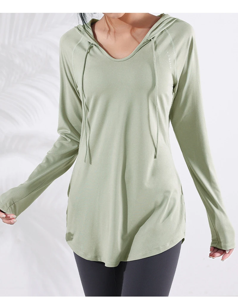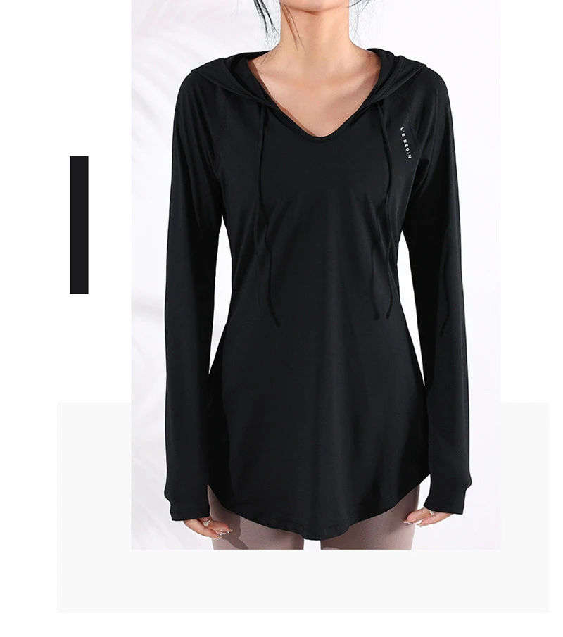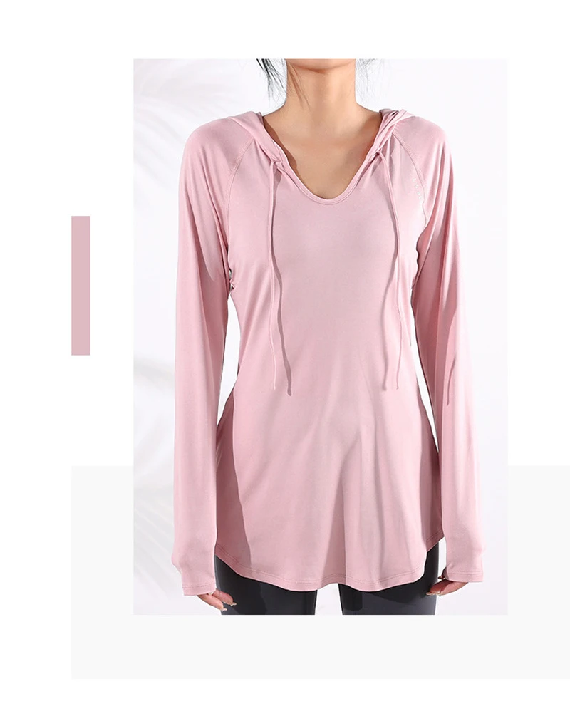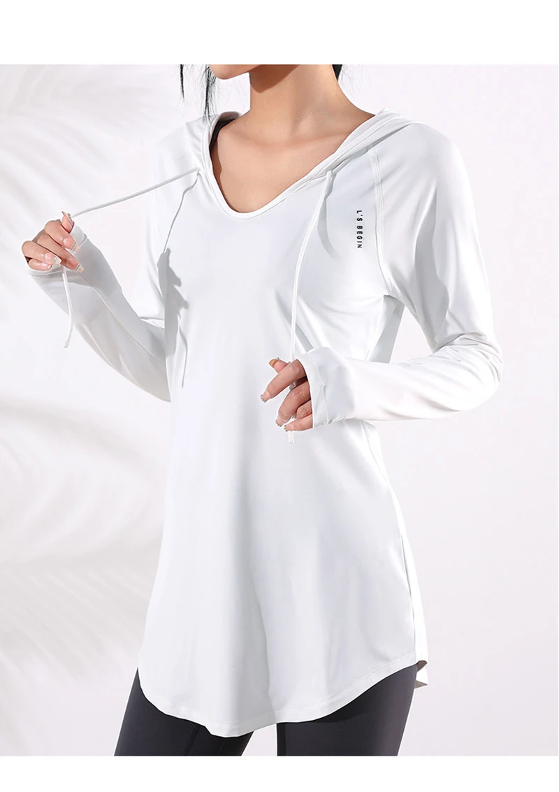 Casual loose hooded sweatshirt fitness top long sleeves extender shirt women