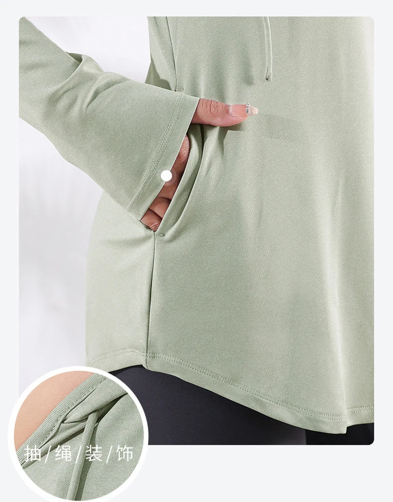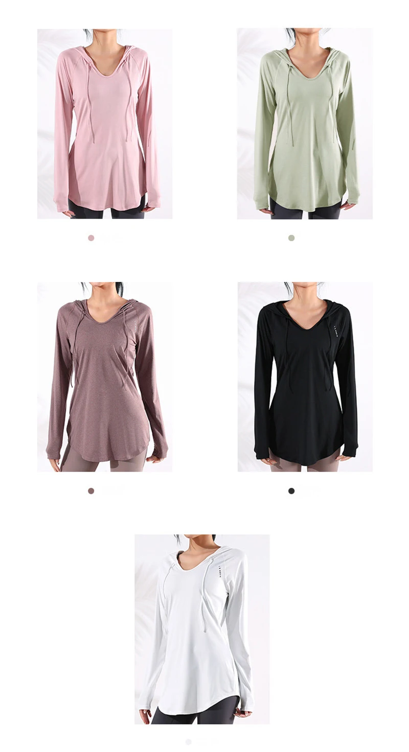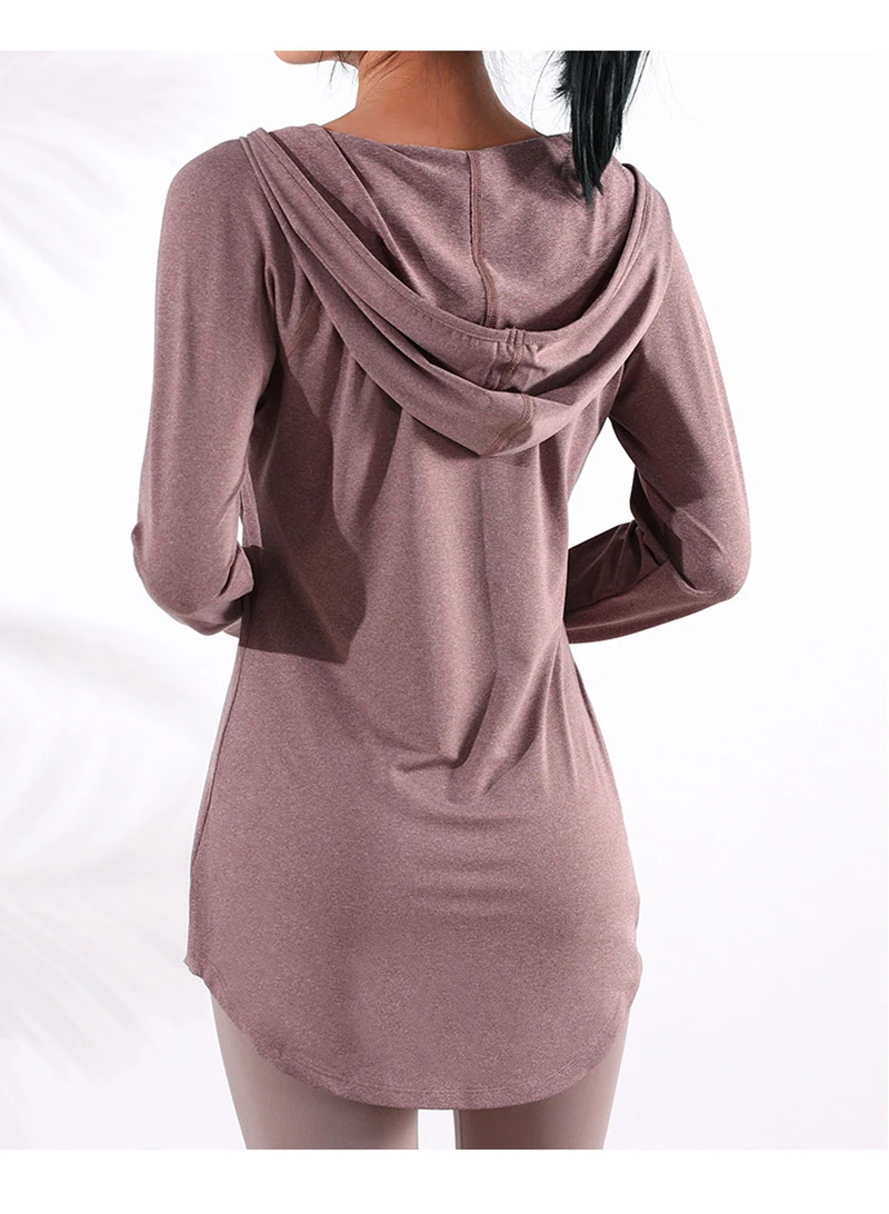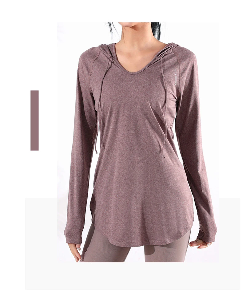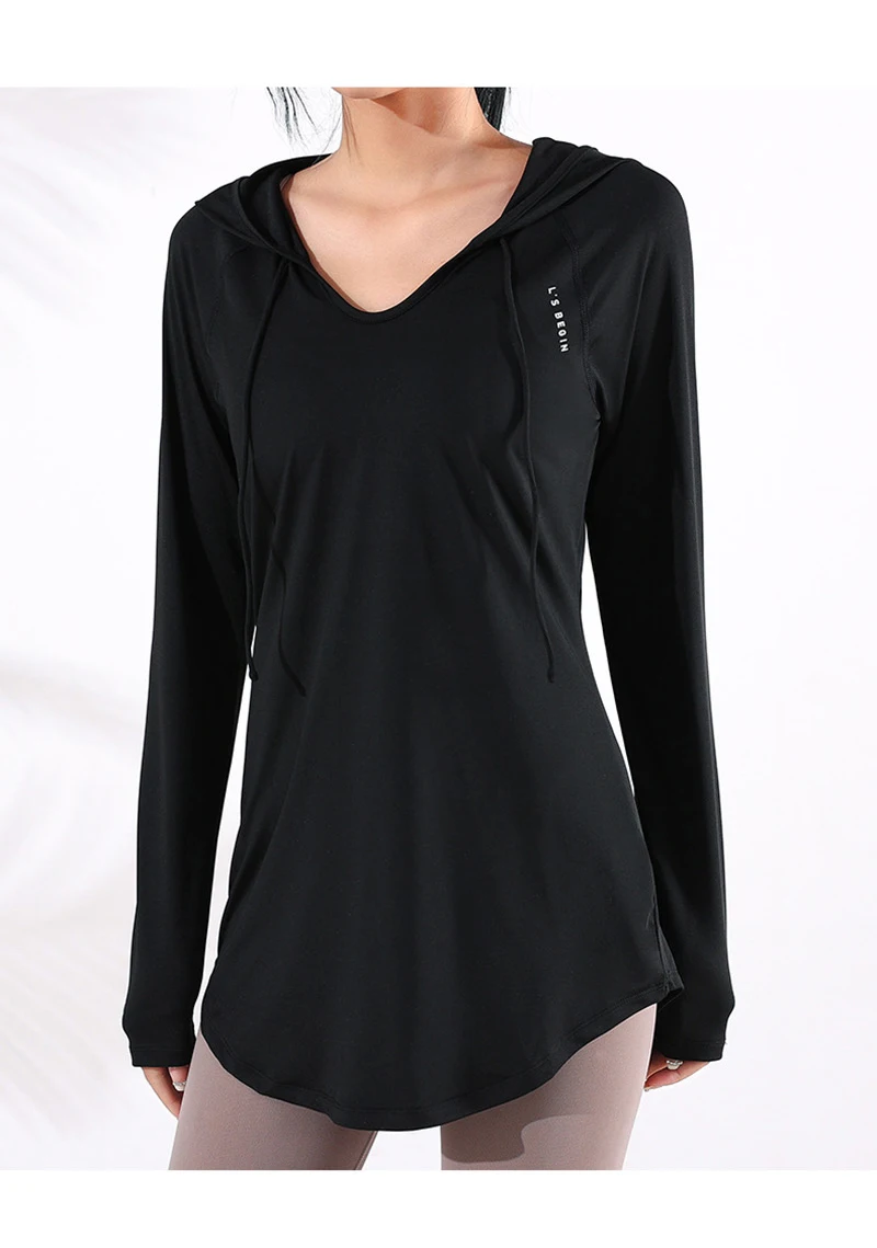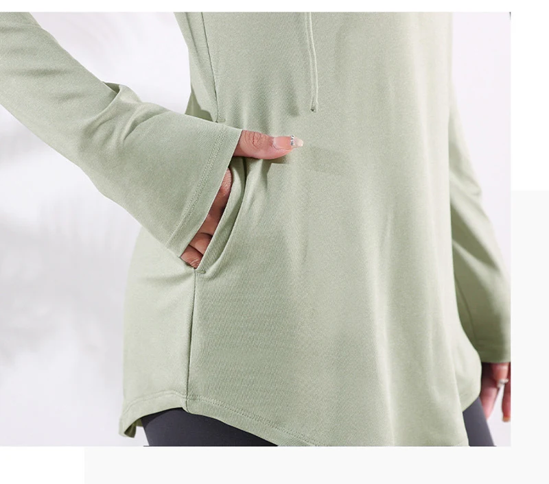 Casual loose hooded sweatshirt fitness top long sleeves extender shirt women