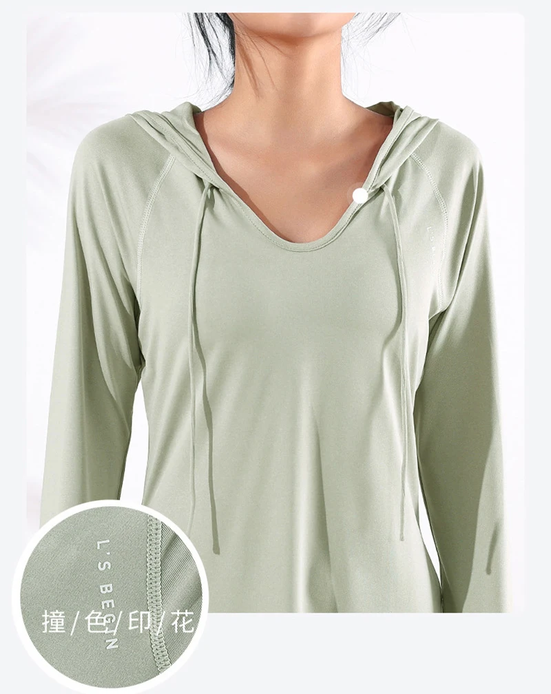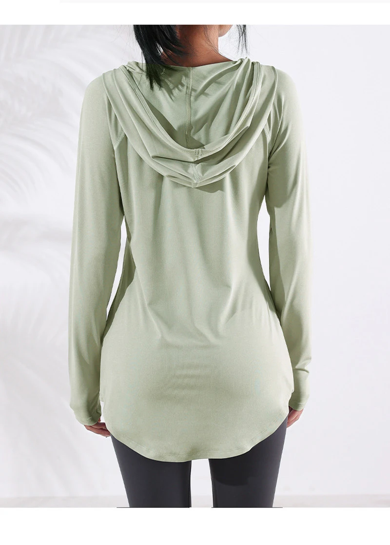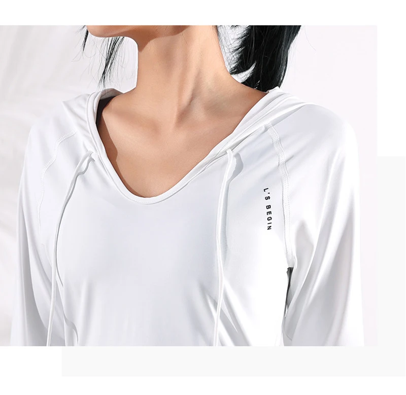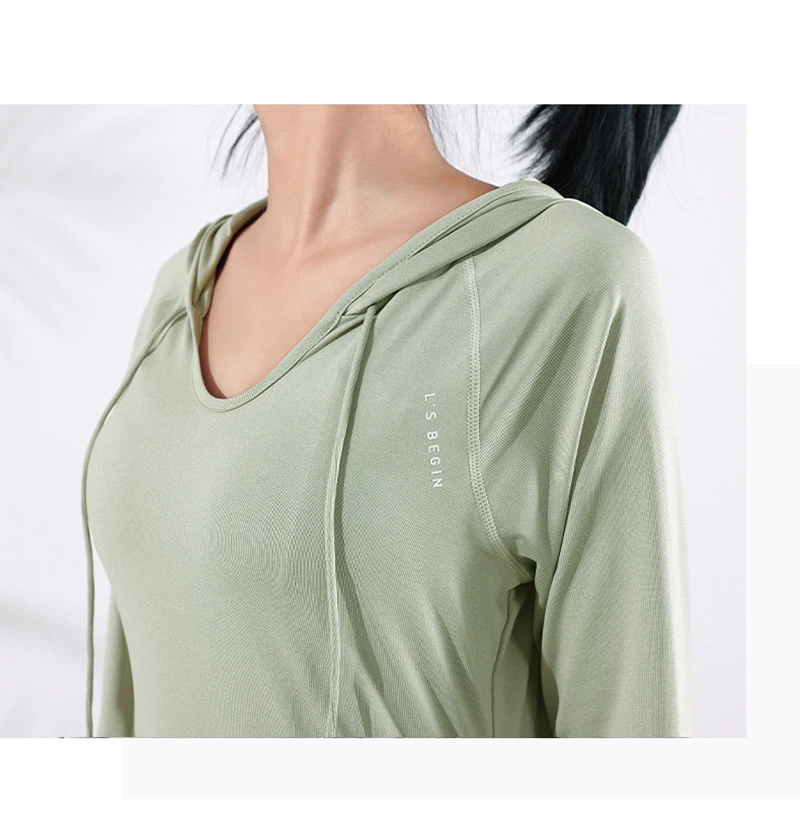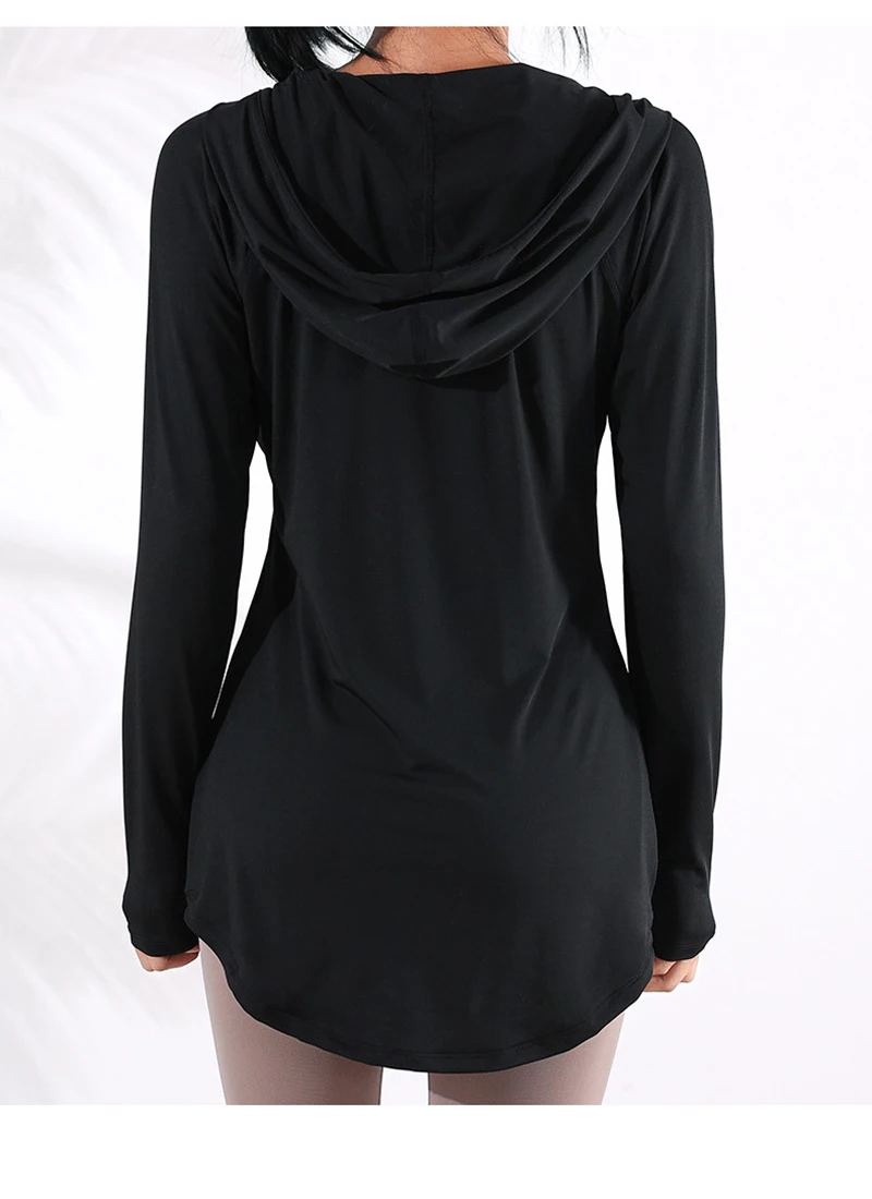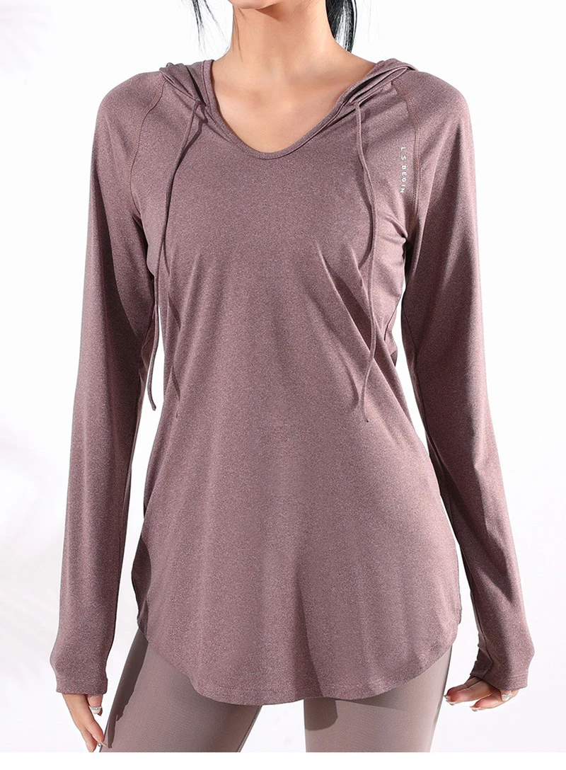 Casual loose hooded sweatshirt fitness top long sleeves extender shirt women